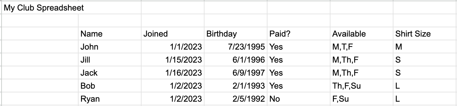 Consider the example you’re using a spreadsheet to keep tabs on your members, it’s been a busy year but you think everyone in the club has paid up-to-date except Ryan, but Ryan says he’s definitely paid already: