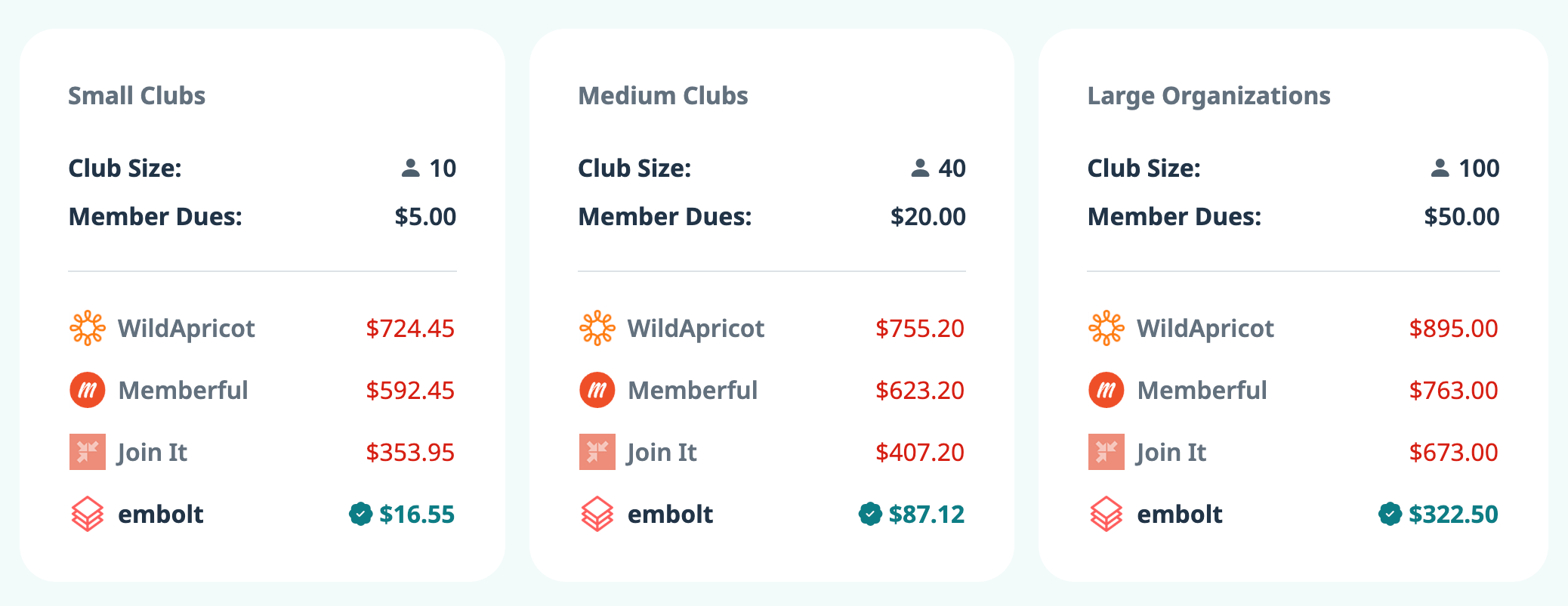Pricing: WildApricot could cost clubs thousands of dollars per year for the features a club needs to manage it’s members.