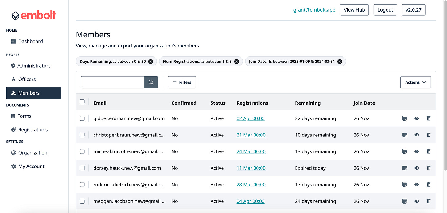 Additionally, embolt allows you to export nearly all of your data making it easy to transition on and off the platform as your clubs needs develop.
