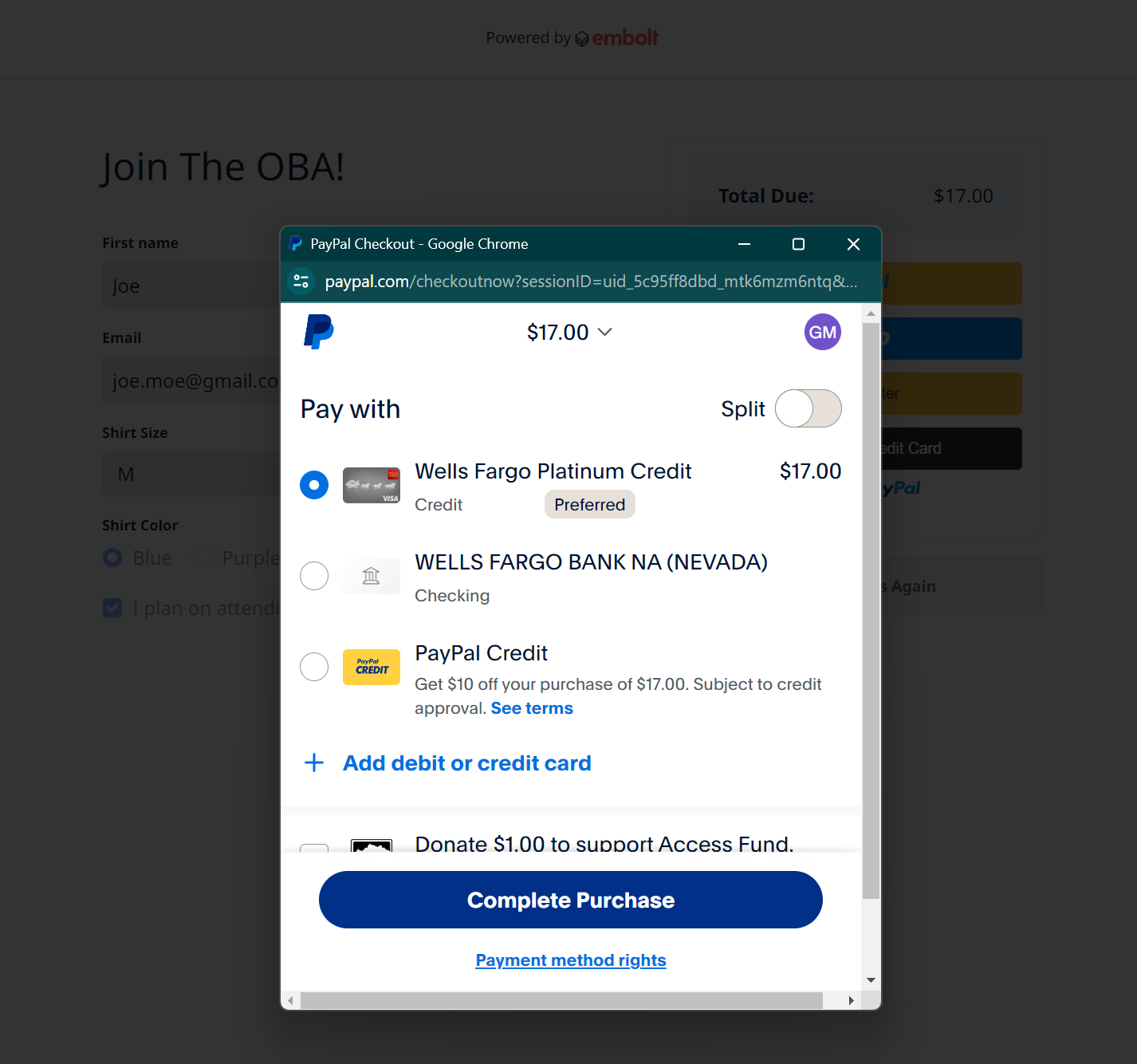 Accept secure transactions over Credit/Debit Card, Venmo, and PayPal via embolt’s exclusive PayPal partnership all without needing a bank account.