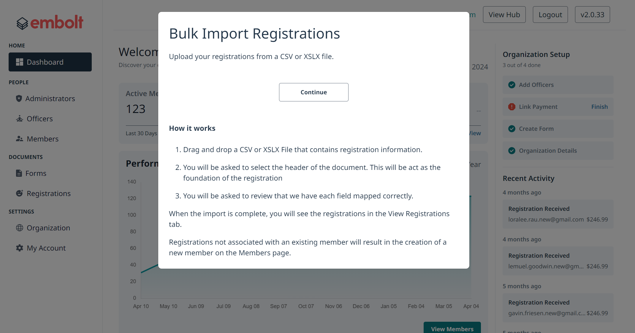 If you’re interested in leveraging club management software to make your club easier to run & grow, give embolt a try. We’re the easiest to use club management platform with no monthly fees and no bank account required!